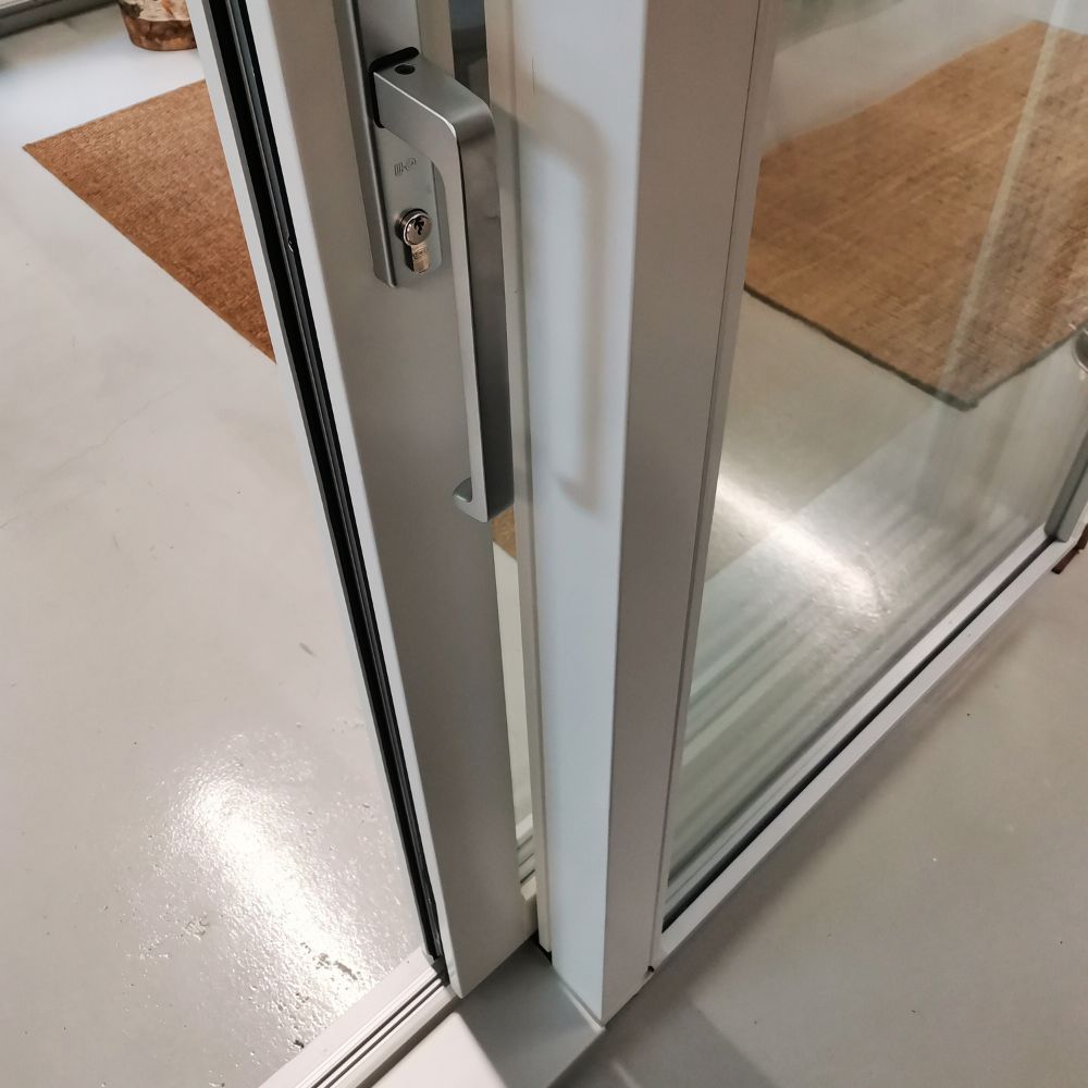 Tarjoamamme liukuovi on tyypiltään nostoliuku- ovi joten se on kevyt käyttää sekä todella tiivis. Kun tukeva painike käännetään alas, ovi nousee herkästi liikkuvien pyörien päälle, laskettaessa alas ovi painuu napakasti tiiviisti tiivisteitä vasten.