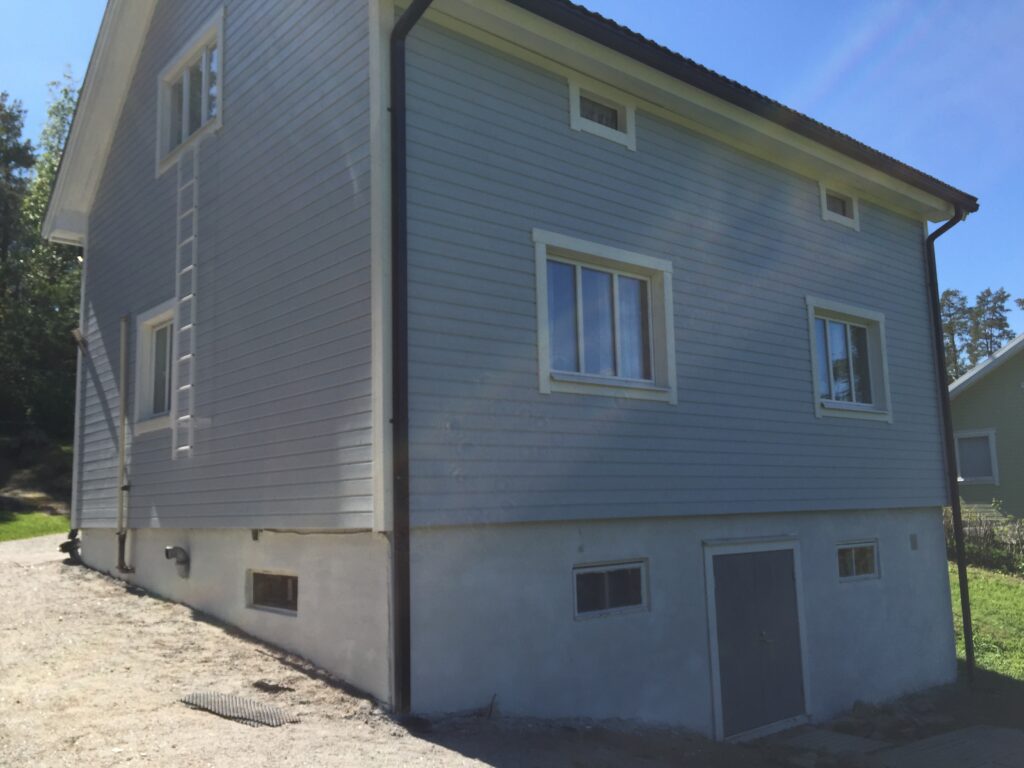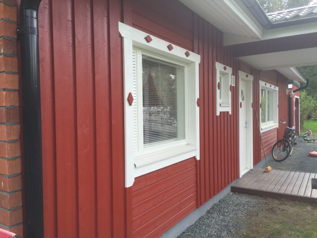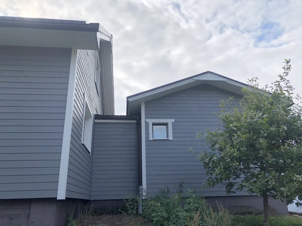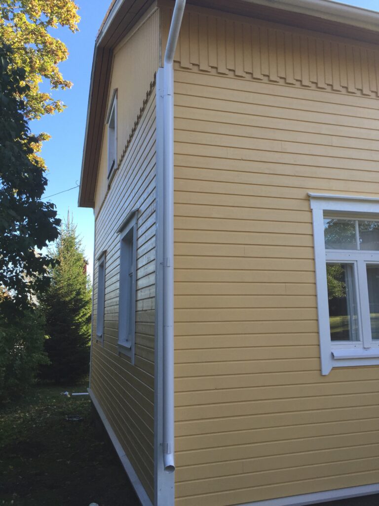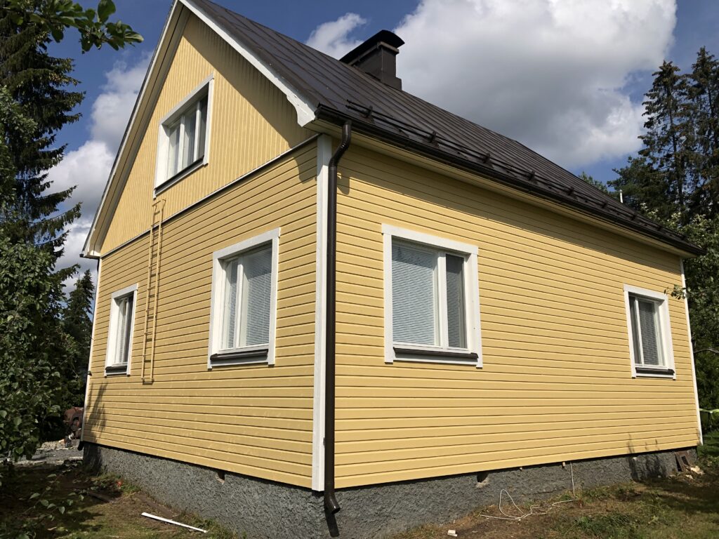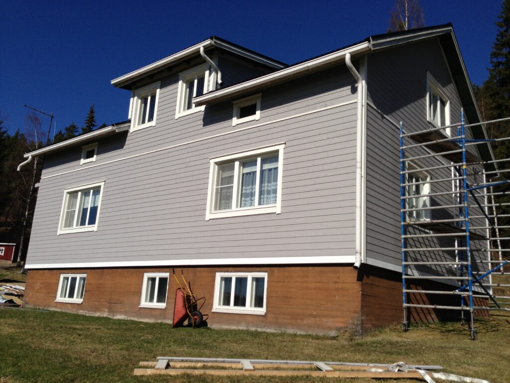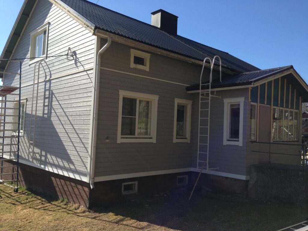 Pohjatöiden jälkeen uuden pintamateriaalin ero onkin jo huomattava mikäli käytetään valmiiksi pohja- ja kahteen kertaan pintamaalattua ulkoverhouspaneelia.