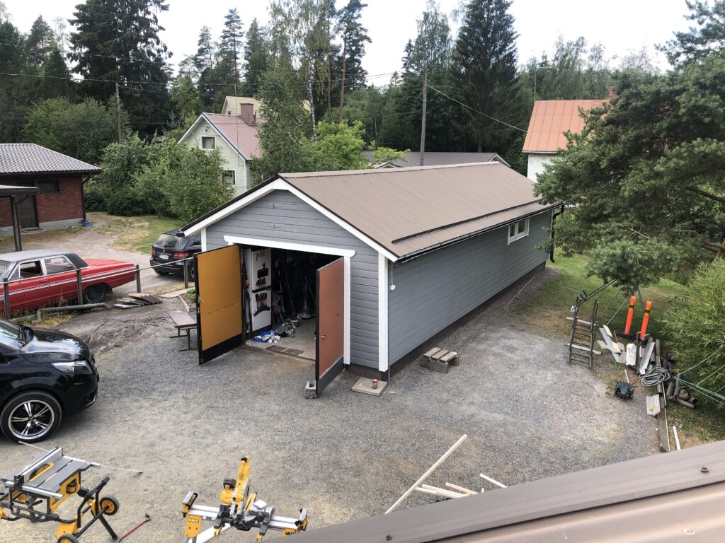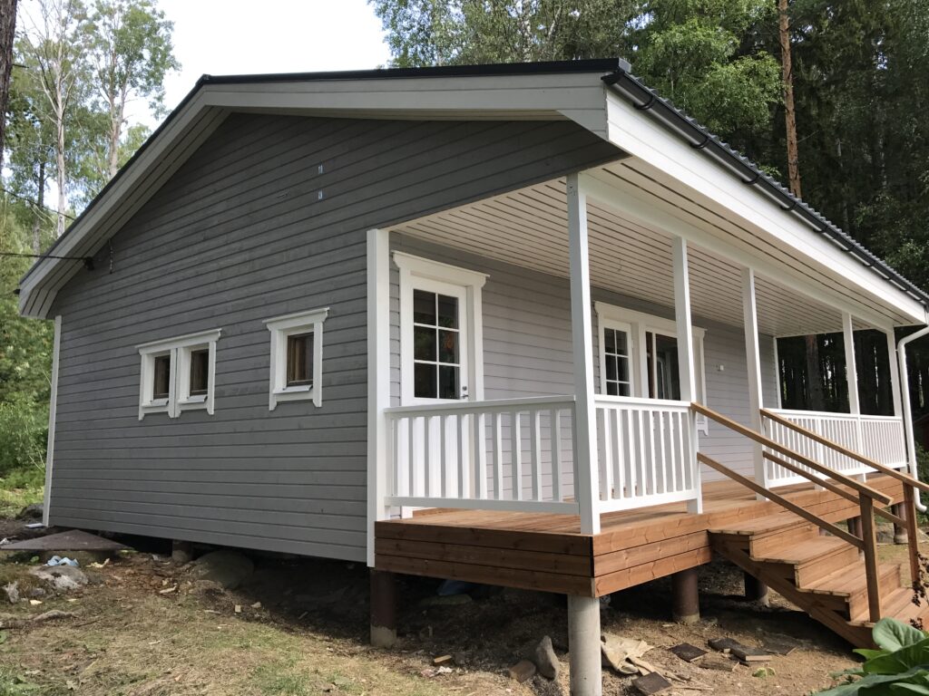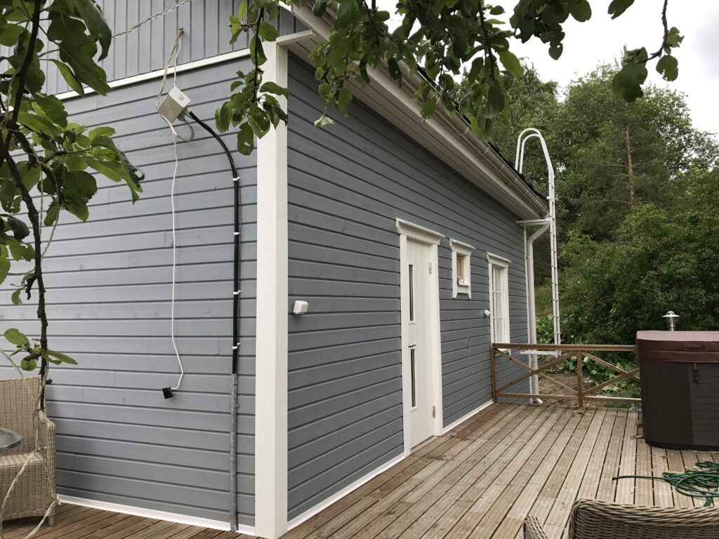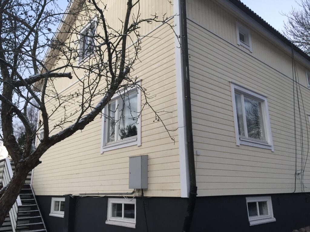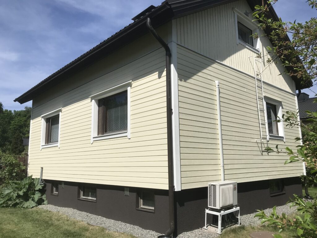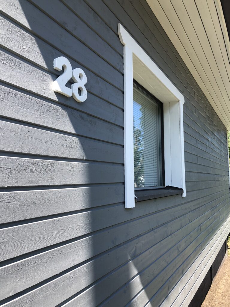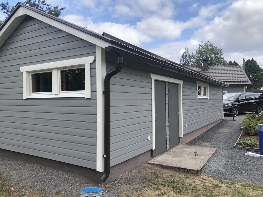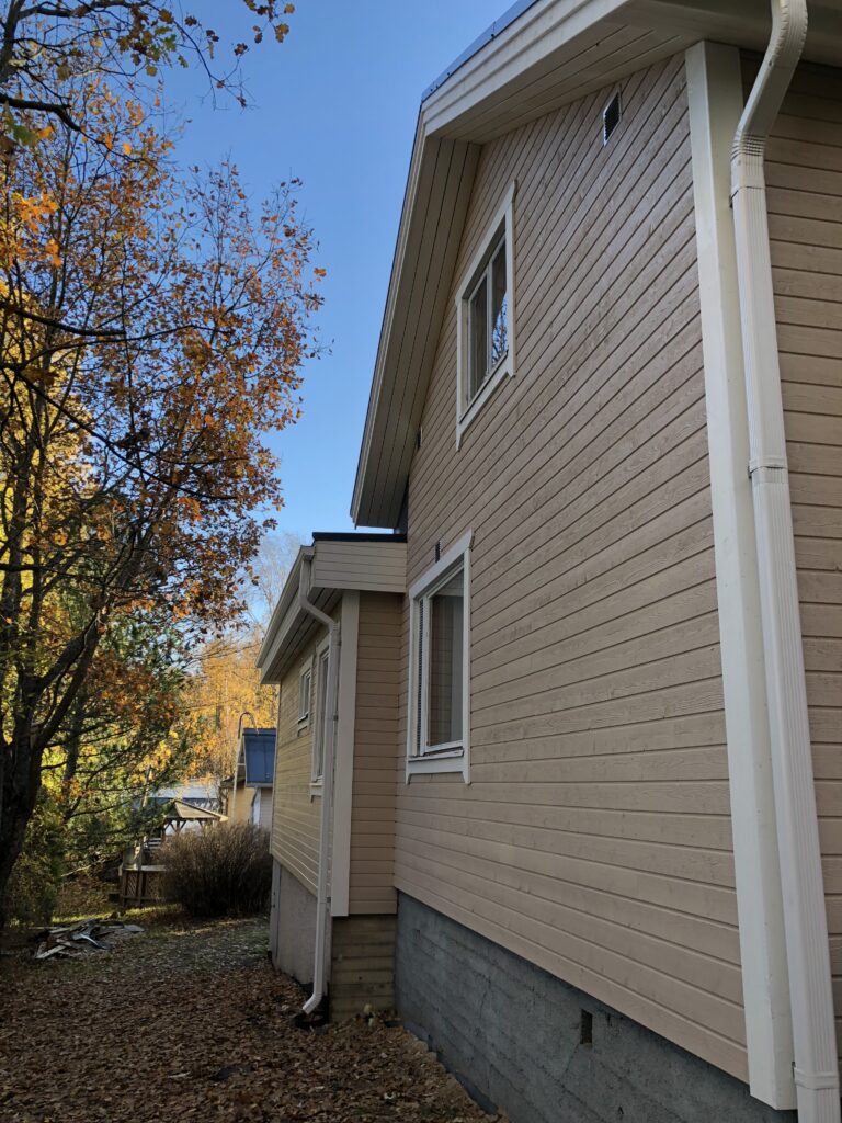 Pohjatöiden jälkeen uuden pintamateriaalin ero onkin jo huomattava mikäli käytetään valmiiksi pohja- ja kahteen kertaan pintamaalattua ulkoverhouspaneelia.